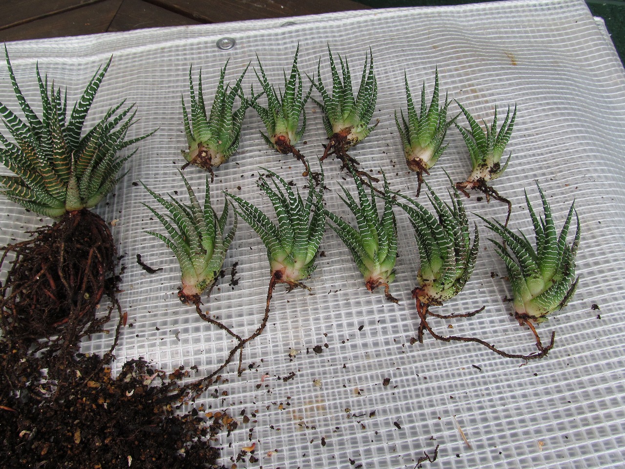 こんなに増えちゃいました 2016年4月5日 に morinokaze が投稿 — コメントはありません ↓ いろんな種類の多肉植物を育てていますが、その中のひとつ『十二の巻』というこの多肉ちゃん、ゼブラ模様が特徴ですが、丸沼の気候に合っているのか、元気旺盛でご覧のように鉢からあふれんばかりになってしまいました。暖かくなってきたので、植え替えてみました。 ここ数年でこのような状態に。プラ鉢が変形していました。 バラしてみると子株が10個も! 植替えも終わり、親株も子株もスッキリ。