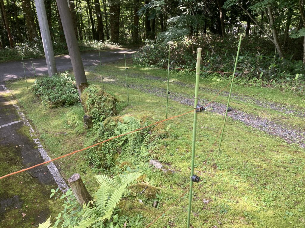 ついに電気柵を設置しました 2025年7月19日 に morinokaze が投稿 — コメントはありません ↓ 自然が豊かな丸沼は、いろいろな森のお客さんが入ってきます。今年は特に鹿の被害が顕著になってきました。以前にも設置した事はあったのですが、面倒なのと食べられるのは数種類の植物だけでしたのでやめていましたが、今年はちょっとひどいので約10年ぶりに再設置。 森から入ってくるので、森側に設置しました。果たして効果はいかに? 葉がほとんど食べられてしまった紫陽花です。 花壇の中には鹿の足跡がたくさんあります。