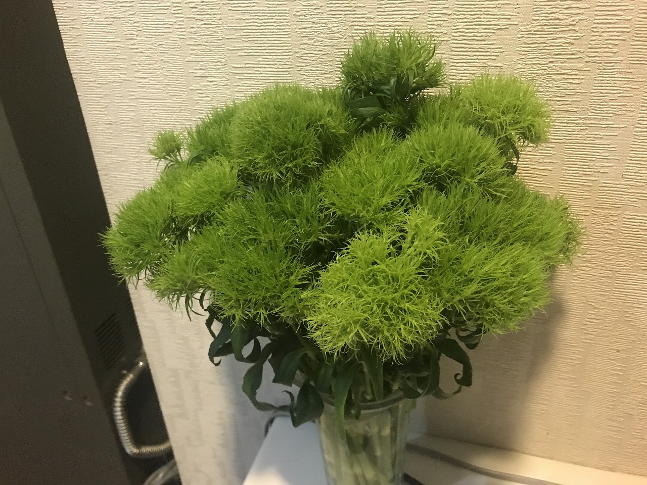なんとも不思議な花 2020年3月19日 に morinokaze が投稿 — コメントはありません ↓ 先日、なんとも不思議なお花を頂きました。花全体が緑色のマリモのようでかわいらしい植物です。調べてみると「テマリソウ」というナデシコ科の花でした。確かに茎の方を見るとナデシコや同じ仲間のカーネーションにそっくりです。緑色は森の風のイメージカラーでもあるので大好きです。それにしても品種改良でこんなものもできるとは驚きです。