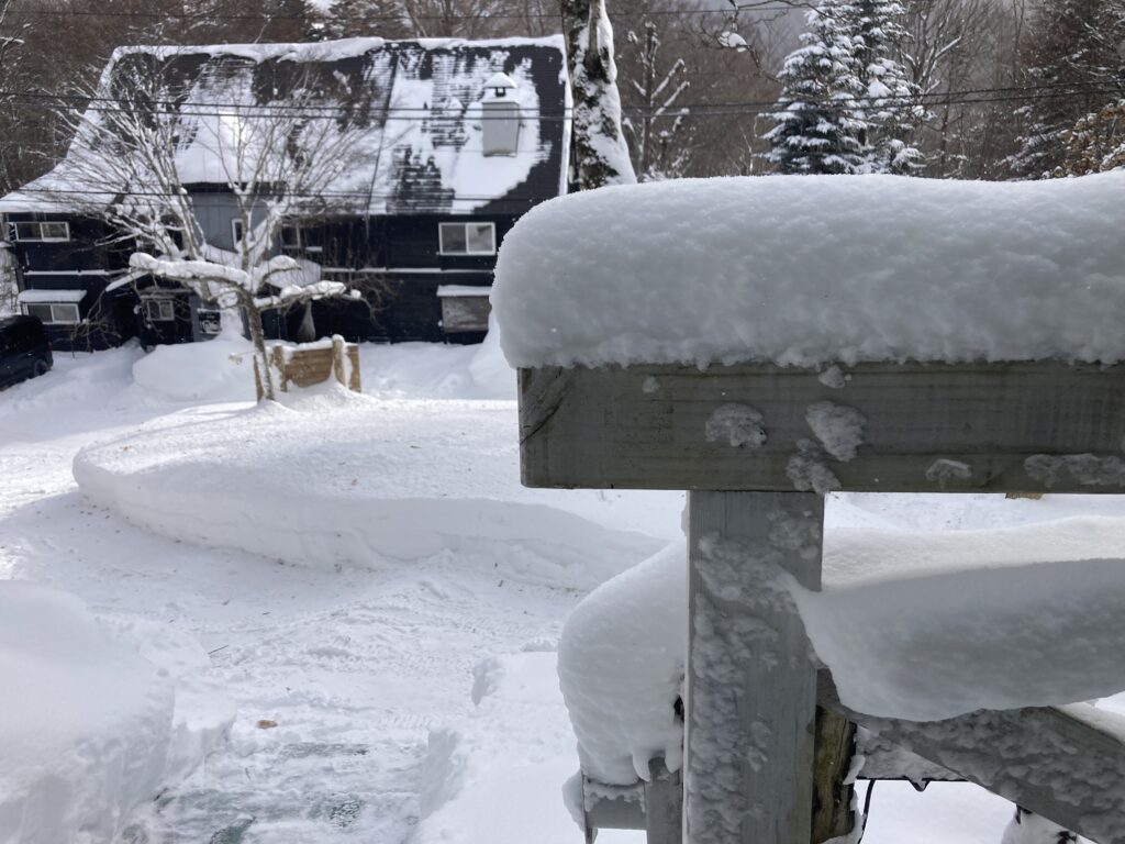 心配していた恐怖の一夜が明けてみたら、積雪20センチという結果でした。ホッとしています。我が家の除雪機では50センチ以上になると歯が立たなくなり、応援をお願いする様ですが、この位だと気持ちよく除雪ができます。今朝も2時間でペンション周りは完了しました。