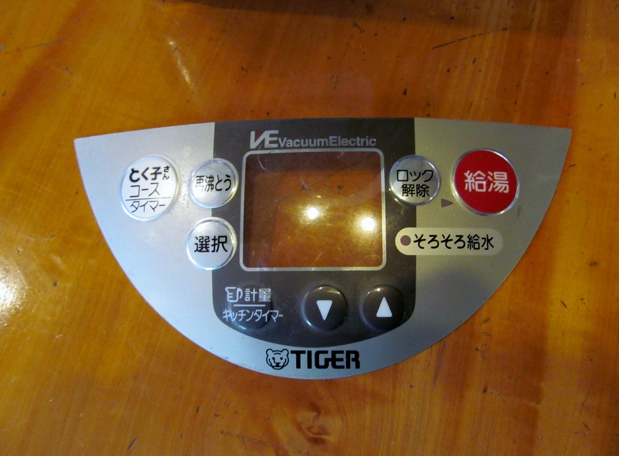 長年、我が家で重宝してきた「5L大容量ポットとく子さん」が、突然壊れました。ロック解除は出来るのですが、給湯ボタンを押してもお湯が出てきません。ポンプが壊れたかなと、一旦はゴミ置き場へ。ふと、先日直したMDプレヤーを思い出し、駄目もとで修理にトライ。ネットで検索すると同じような事例がありました。この種のスイッチは両面テープでふさいであるだけなので、角からナイフでそーっと剥がします。案の定、給湯スイッチの樹脂が長年の疲労で折れたようです。この部分を樹脂接着剤で固定し、充分に乾いてから組み立て修理完了。やってみれば簡単でした。これでまだまだ現役続行。ゴミにならないで良かったです。