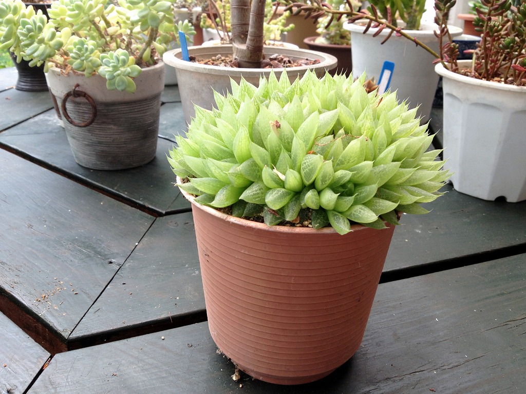 長年育てている多肉植物ですが、いつの間にか鉢いっぱいに育ち、苦しそうなので株分けをしました。今回株分けしたのは「ハオルシア」という、少し透明がかって、プリプリ感がかわいい多肉です。