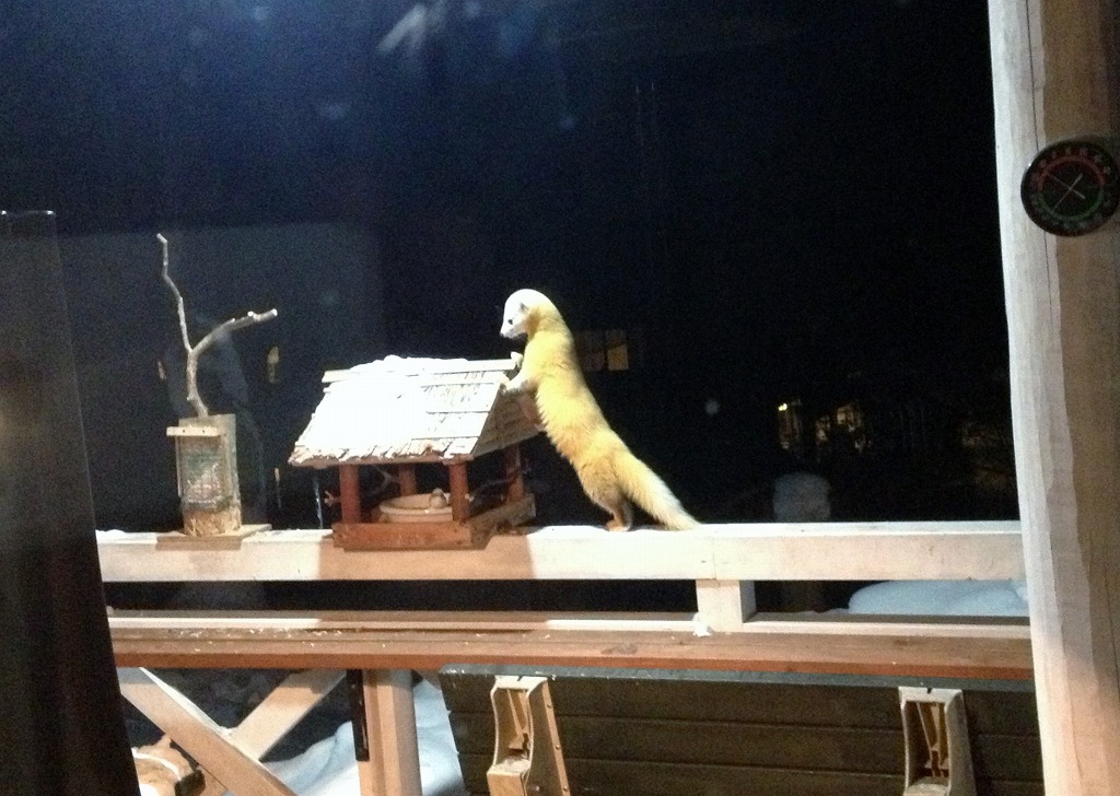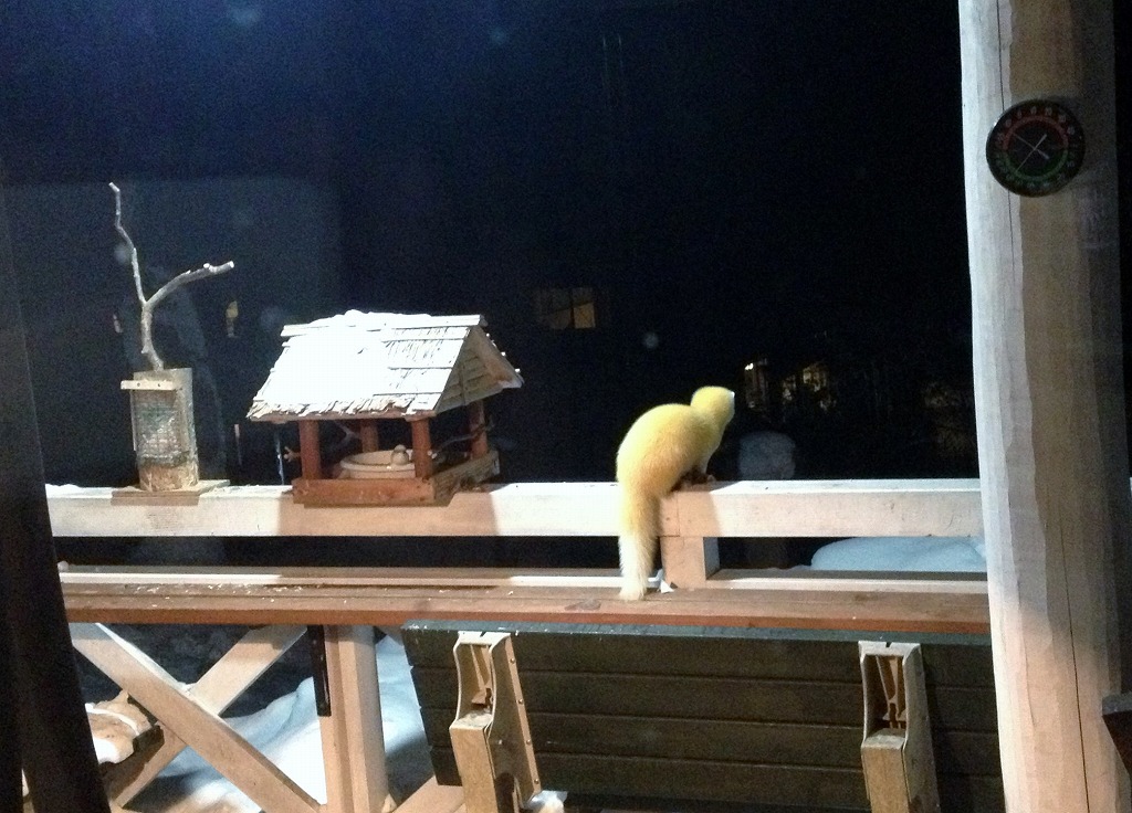 最近テンがやってきました 2018年2月8日 に morinokaze が投稿 — コメントはありません ↓ 昨年は毎日のように顔を出していたテンが今年はあまり見かけませんでしたが、最近になってやっと姿を見せてくれるようになりました。時間帯は夜中が多かったのですが、だんだん早くなり夕食時にも見かけるようになりました。テンは夏毛と冬毛に換毛するのですが、冬毛の今は黄金色の体毛と白い顔がかわいいですよ。運がよければ見られるかも。 野鳥にあげているエサの残りを食べに来ています。 立ち上がった姿もかわいいですね。