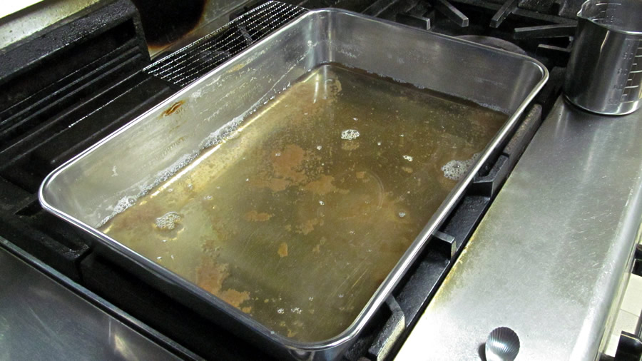 4月11日から3日間で約30リットルが取れました。これを煮詰めるのですが、表面積が広い方が効率がよさそうなので、我が家で最大のバットで水分を蒸発させます。このバットに10リットル入るので、減ってきたら足しながらゆっくりと煮詰めます。