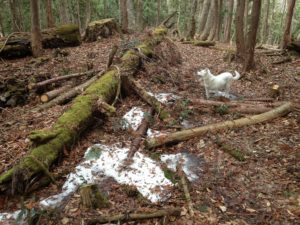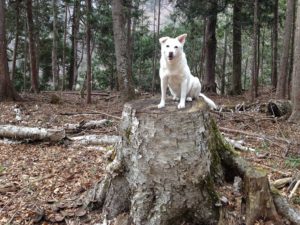 森の中も雪が消えて 2017年5月10日 に morinokaze が投稿 — コメントはありません ↓ 先日まで残っていた雪もほとんどなくなり、やっと森の中を散歩できるようになりました。春になって初めての森散歩です。決められた遊歩道の散歩と違い、森の中は自由に駆け回れるのでペコも嬉しいみたいです。ここは我が家のすぐ裏手で、以前は笹が生い茂っていましたが、最近は鹿の食害と間伐で、ご覧のように歩き易くなっています。 見渡す限り落葉で草や笹も見えません。夏には鬱蒼となる森も、この時期は明るくて散歩が楽しいですよ。 場所によってはご覧のように雪が残っています。 切り株に飛び乗ってポーズをとるペコ。今年13歳になりますが元気です。