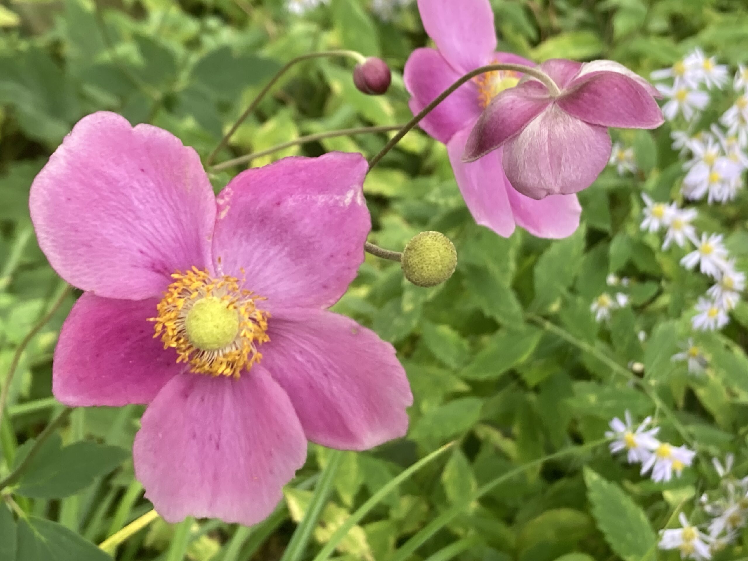 秋の花満開 2025年9月21日 に morinokaze が投稿 — コメントはありません ↓ 秋の花「シュウメイギク」と「ノコンギク」が満開になりました。シュウメイギクは以前一株植えたものが地下茎で、ノコンギクも野生の物が入り込んで同じく地下茎で、年々増えています。この花を見ると、秋を感じますね。 シュウメイギク(秋明菊) ノコンギク(野紺菊)