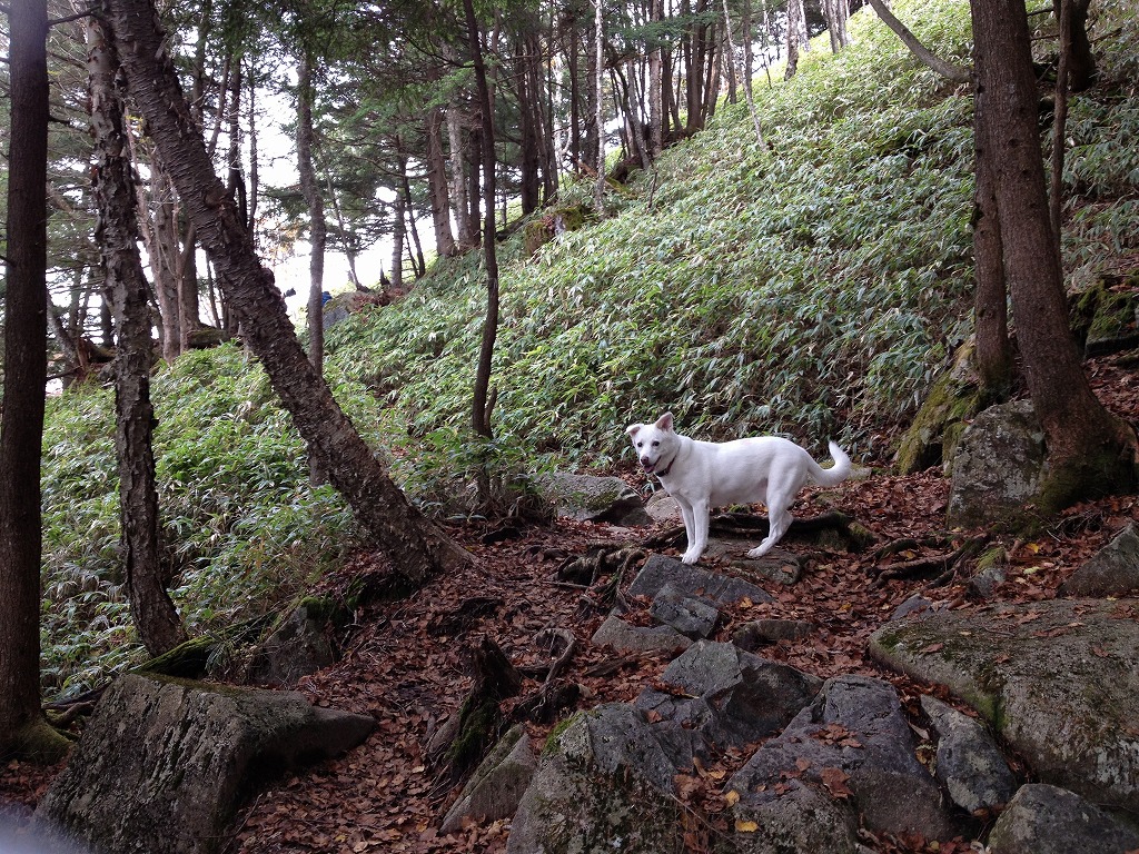今年13歳になった愛犬ペコも元気よく登っています。他の登山客がいない時はノーリードですが、私が遅れると待っていてくれるいい子です。
