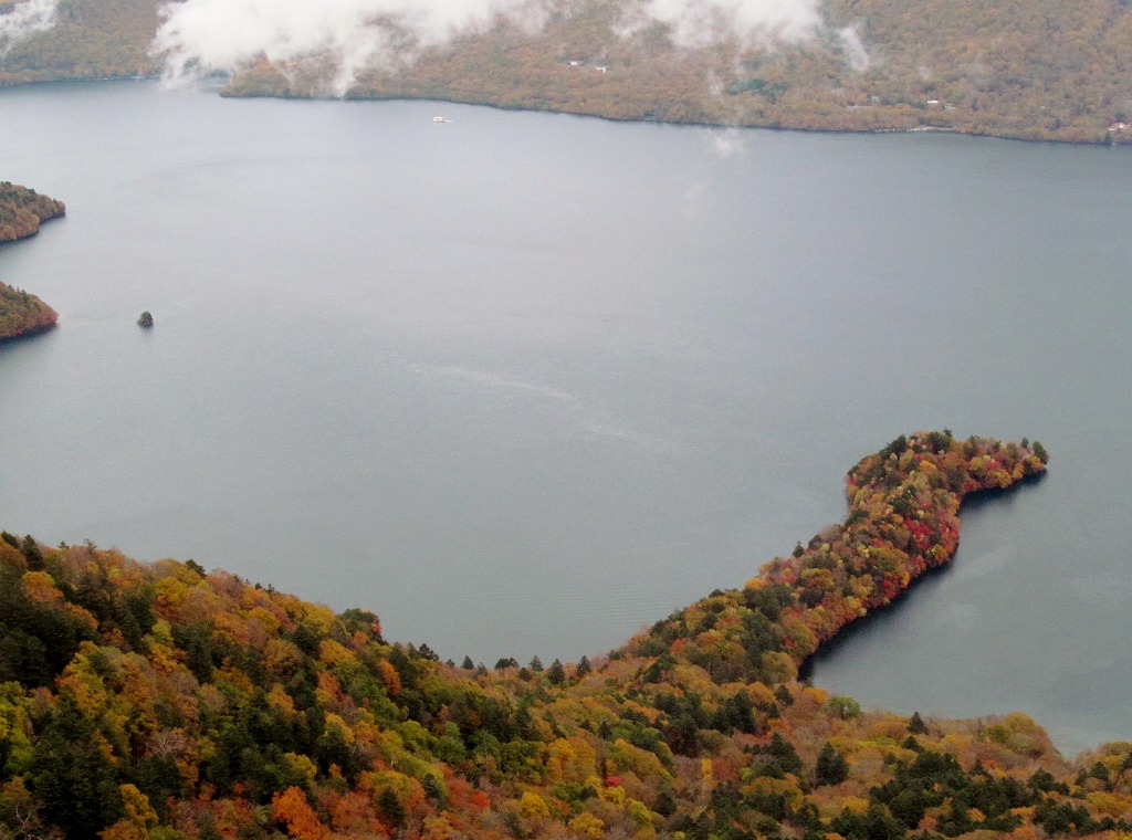 日光白根山の初冠雪(10/17)や、ロープウェー山頂に初雪(10/19)と、丸沼はすっかり秋が深まって寒い日が続いています。紅葉もそろそろ終盤を迎える頃なので、中禅寺湖の南側にある半月山へ行ってきました。台風一過ということで晴天を期待していましたがあいにくの曇り空、それでも中禅寺湖近辺は最高の紅葉が見られました。帰りはお約束の日光湯元で温泉に入って、久々の休日を楽しんできました。