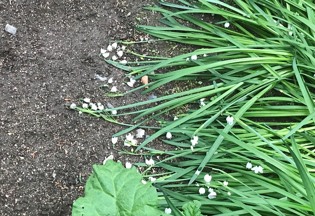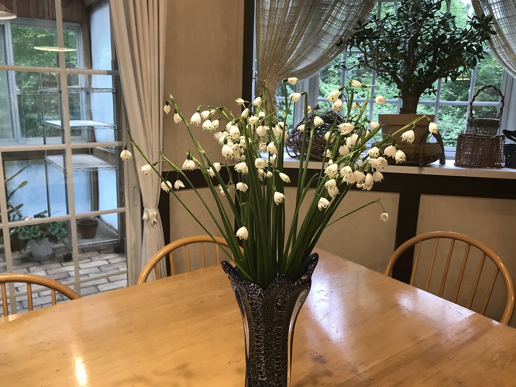 毎年、スイセンが終わると次々と咲き始める「スノーフレーク」が、先日の雨でご覧のような状態になってしまいました。こうなってしまうと残念ながら起きてくることはなさそうです。まだ地面に着いていなかったきれいな花は切り取って花びんへ。