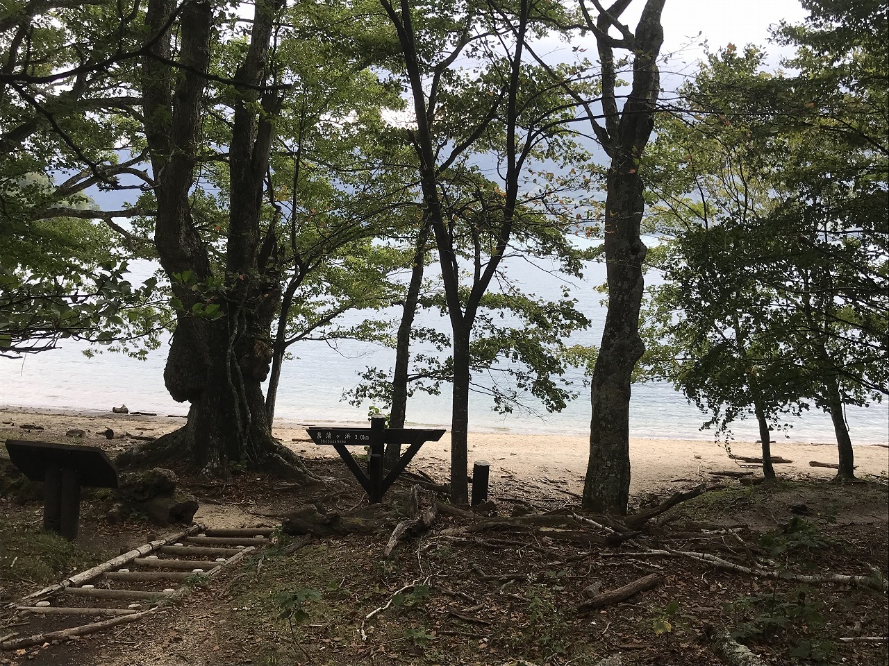 下りは約1時間。中禅寺湖畔の熊窪に到着。ここからは湖畔沿いに3kmで竜頭の滝へ出られます。